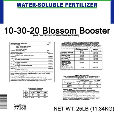 Blossom Booster 10-30-20 is a Professional formula designed to produce more flowers and brighter colors on all indoor and outdoor plants. Feeds through both the roots and the leaves. This is the Original Blossom Booster with the proven 1:3:2 nutrient ratio – the quality is unmatched in the home gardener market. Trusted by many professional growers as a tool to fill out a blooming container. This formula will produce the same GREAT results for you at home.