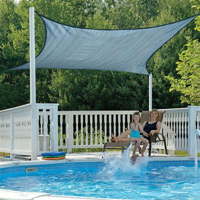 Sun Shade Sails block up to 90% of harmful UVA and UVB rays with its high density polyethylene fabric. The UV stabilized shade sail is durable, yet breathable, allowing rain to pass through without collecting or pooling on top of the sail. Perfect for decks, patios, pool and play areas, picnic areas, parks, gazebos and more.