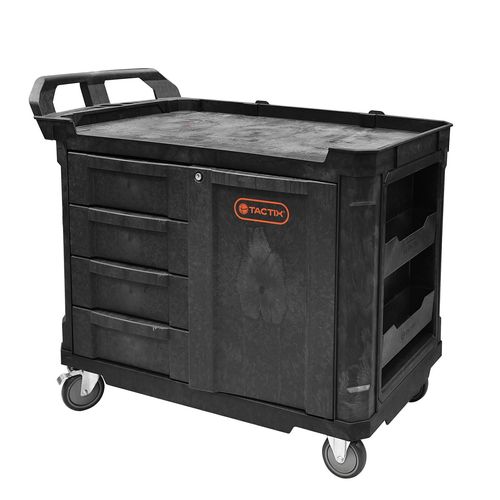 The Tactix tool cart is a versatile unit with various storage capabilities such as its multiple drawers and cupboard combination. Which allows you to work away on the go accessing many of your tool storage needs, then combining a large work surface area and its heavy duty loading capacity of 360kg it can get most jobs done. Tactix 49 Tool Cart Australia